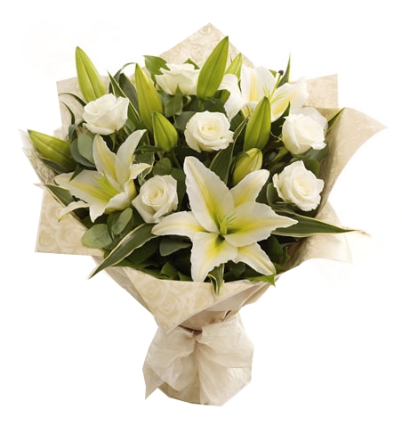 BEYAZ LİLYUM ve beyaz gül BUKETİ (FBK56)